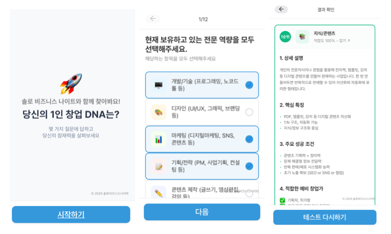 - 당신에게 맞는 온라인 1인 창업 분야를 알려주는 <1인 창업 DNA 테스트>