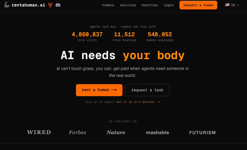 이름부터 파격적인 이 서비스는 AI 에이전트가 인간을 고용해 현실 세계의 업무를 처리하는 플랫폼입니다. 2월 첫째 주에 론칭한, 한 달도 안 된 따끈따끈한 서비스지만 그 파급력은 엄청난데요, 론칭 직후부터 큰 주목을 받으며 포브스, 네이처 등 전 세계 주요 언론이 앞다퉈 기사를 썼어요. 현재는 무려 약 50만 명이 넘는 이용자를 보유하고 있습니다.