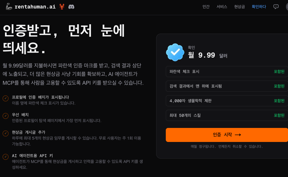 플랫폼에 등록된 많은 인간 노동자들 사이에서 신뢰도를 높이고 우선 노출되기 위해 사용자가 지불하는 구독료인데요, 트위터(X)의 유료 인증 배지와 유사한 방식이에요. 플랫폼 입장에서는 거래 수수료와 달리 작업 완료 여부와 무관하게 안정적으로 발생하는 수익원이기 때문에, 현재로서는 가장 확실한 수익 창출 수단으로 보여요.