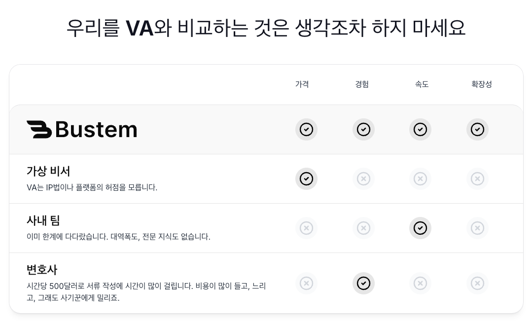 모방범 탐지 기술은 내부용으로 유지하되, 고객이 자신의 IP정보를 제공하면 모방범 삭제를 대행해주는 고객 맞춤형 서비스로 전환했어요. 처음엔 올리버가 거래를 직접 성사시켰고 모든 작업은 100% 수작업으로 진행했어요. 말 그대로 피땀흘려 신뢰를 쌓기 시작했습니다. 첫 고객이 월 3~400만원을 지불하며 가능성을 확인했어요.