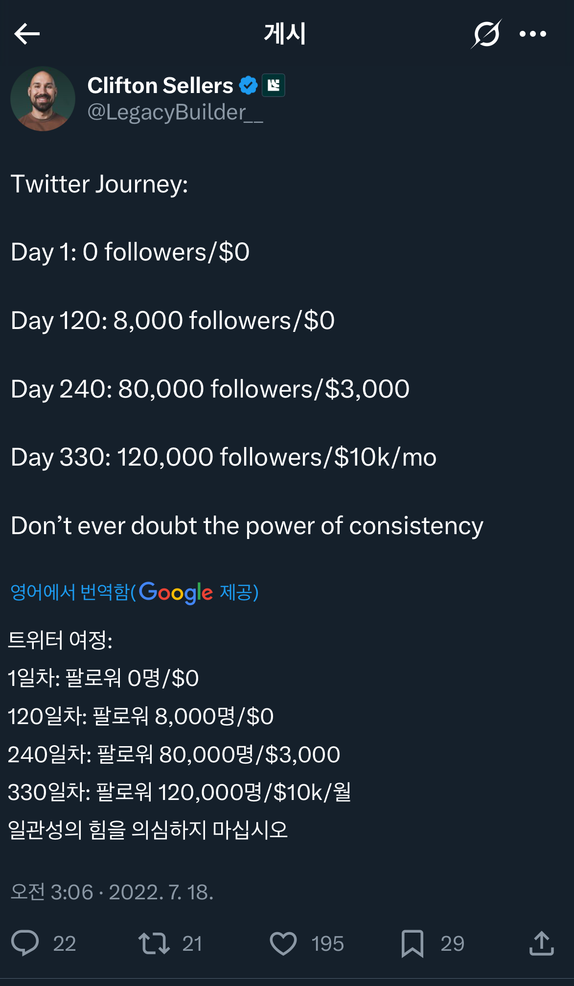 오늘 소개해드릴 창업가는 마약과 알콜 중독자 출신으로, 빈털터리에서 시작해 콘텐츠 에이전시인 Legacy Builder를 창립하여 2.5년 만에 2024년 기준, 연간 수익 100만 달러(약 14억 원)를 달성한 Clifton Sellers (클리프턴 샐러스)입니다. 😀